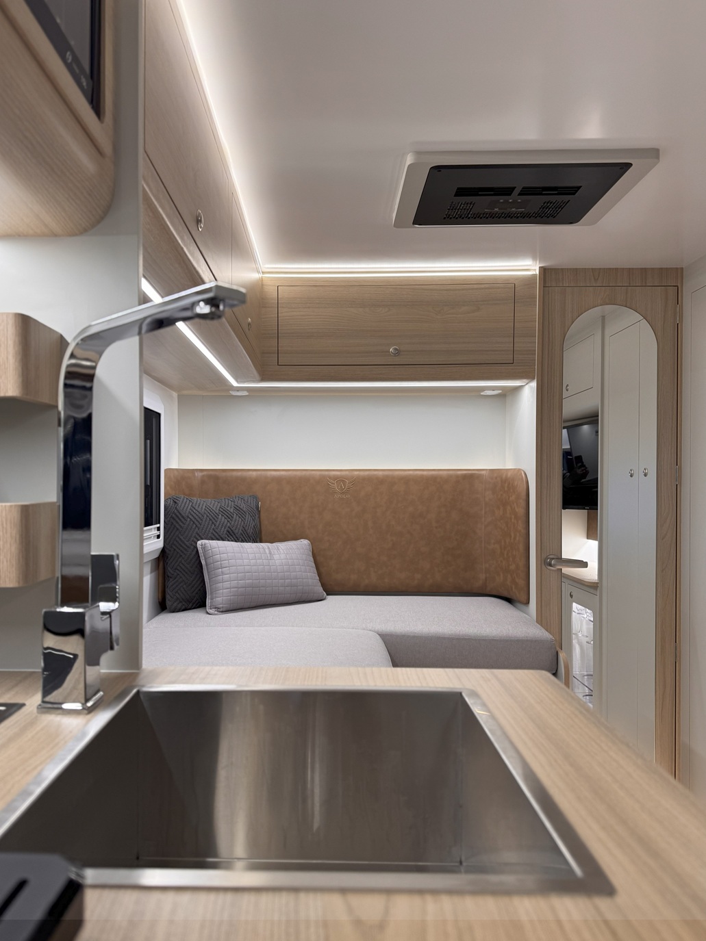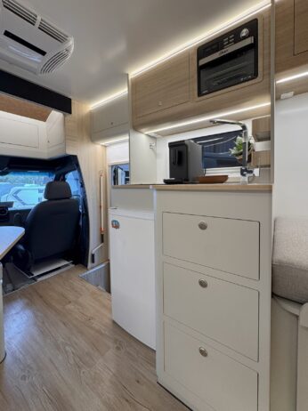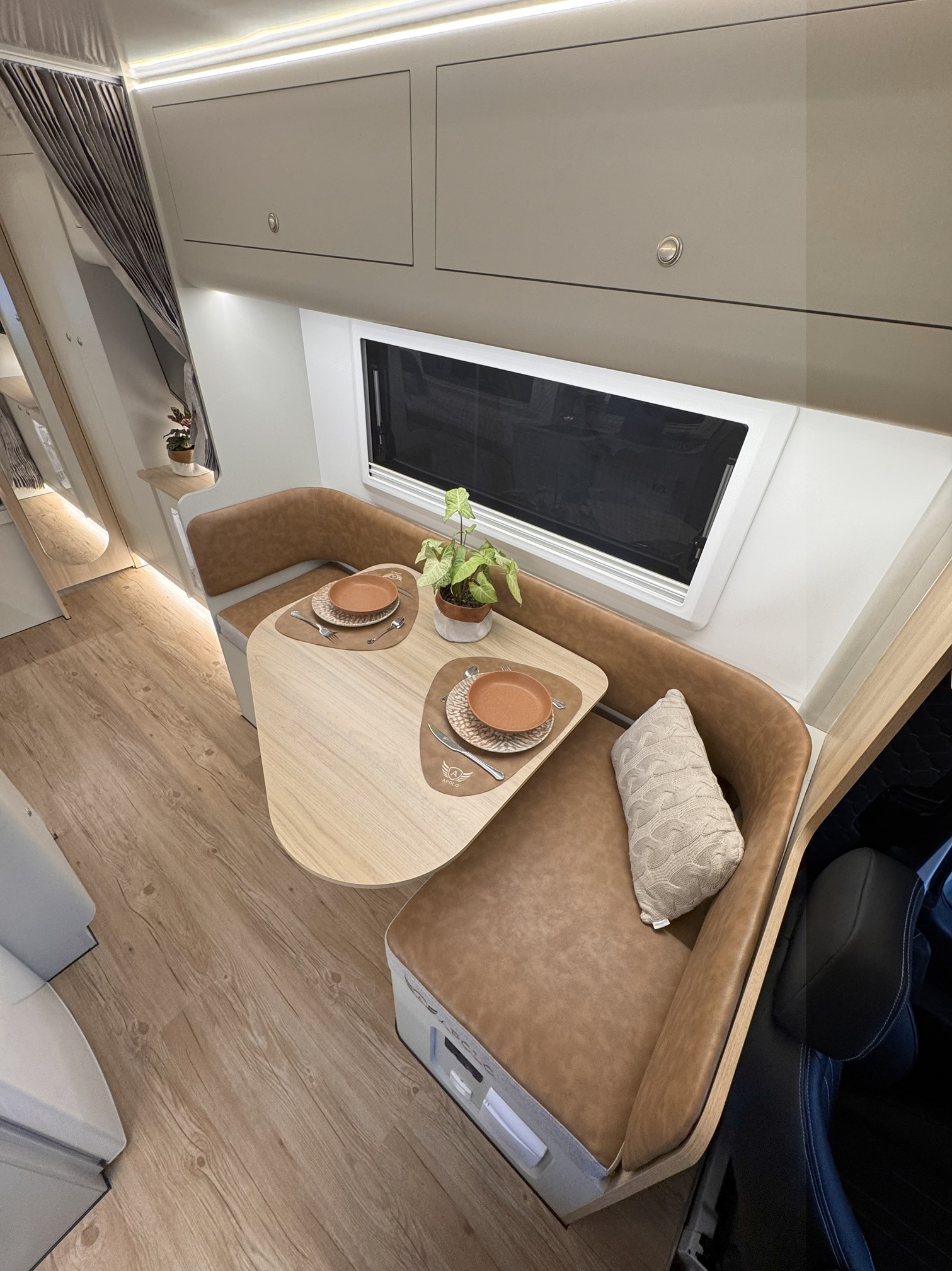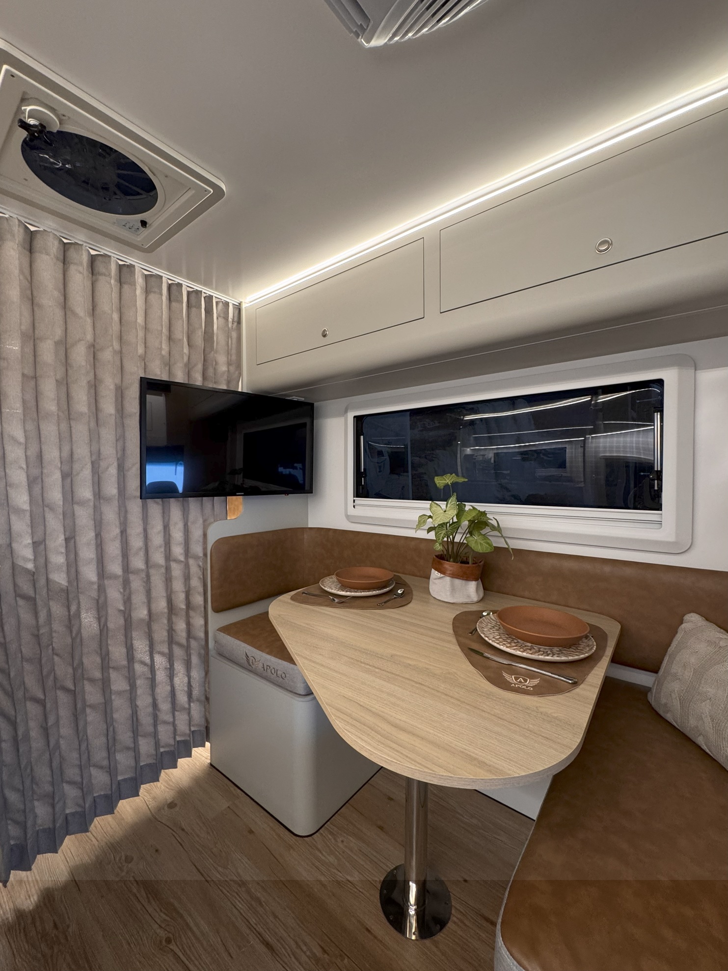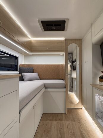 Com um design moderno e otimizado, o Apolo 7.0 Slim oferece um ambiente aconchegante e bem distribuído. A sala de estar convida a momentos de descanso e convivência, enquanto a cozinha totalmente equipada atende todas as suas necessidades culinárias na estrada. As áreas de descanso foram desenhadas para proporcionar noites de sono tranquilas, e as soluções de armazenamento inteligente garantem organização e praticidade para que você leve tudo o que precisa.