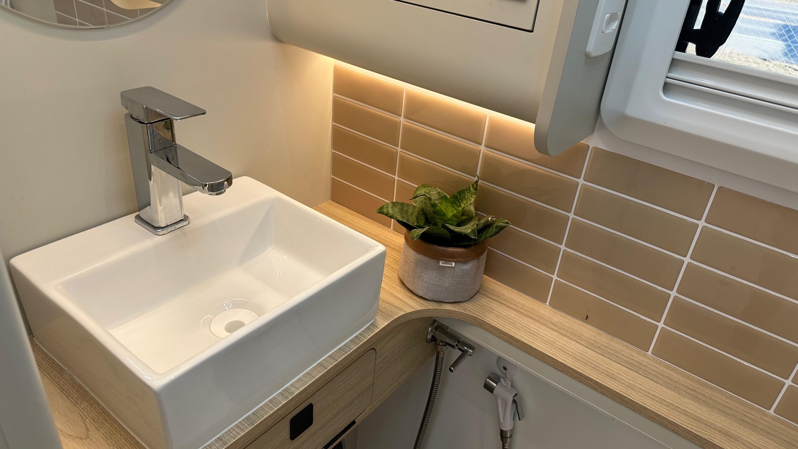 • Luminária LED a prova d’água abaixo do toldo para área externa;