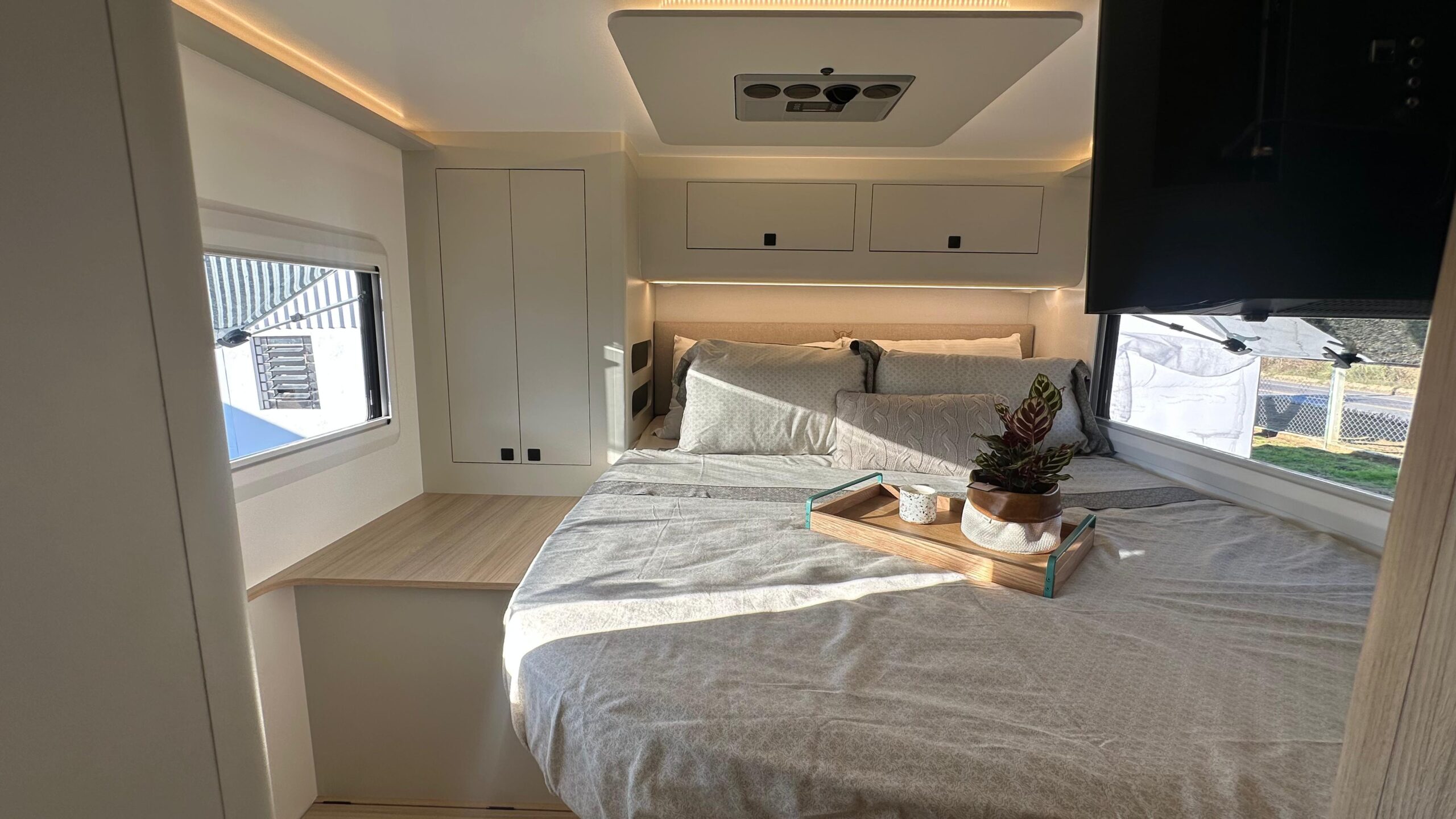 • Cozinha Gourmet Completa: Totalmente equipada com cooktop, pia espaçosa e armários aéreos, proporcionando praticidade para refeições incríveis na estrada.