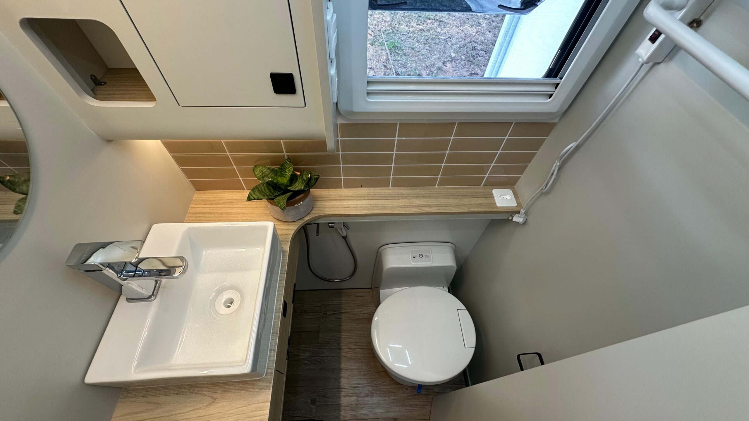 • 1 claraboia na cozinha, com 30cm de diâmetro, regulagem de velocidade de exaustão e ventilação, tela mosquiteiro, abertura automática e sensor de chuva;