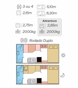 O diferencial do Adventure está no chassi elevado, que aumenta a capacidade de enfrentar terrenos irregulares, e nos pneus all-terrain, que proporcionam mais aderência, resistência e segurança para explorar novos caminhos. - Acomodações para 3 ou 4 Pessoas com Total Privacidade: